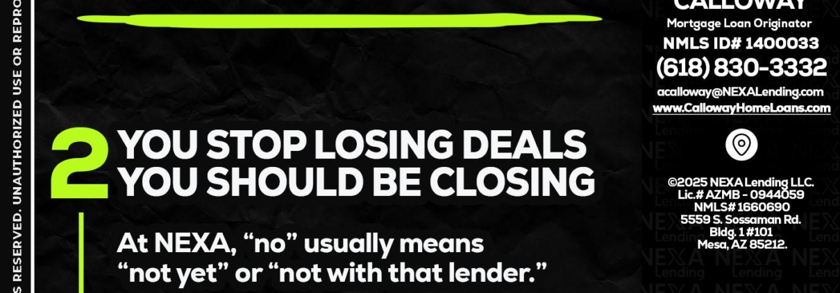Hi, my name is Andrew Calloway. I’m a Loan Officer with NEXA Lending LLC., offering personalized mortgage solutions, fast customized quotes, great rates and service with integrity.