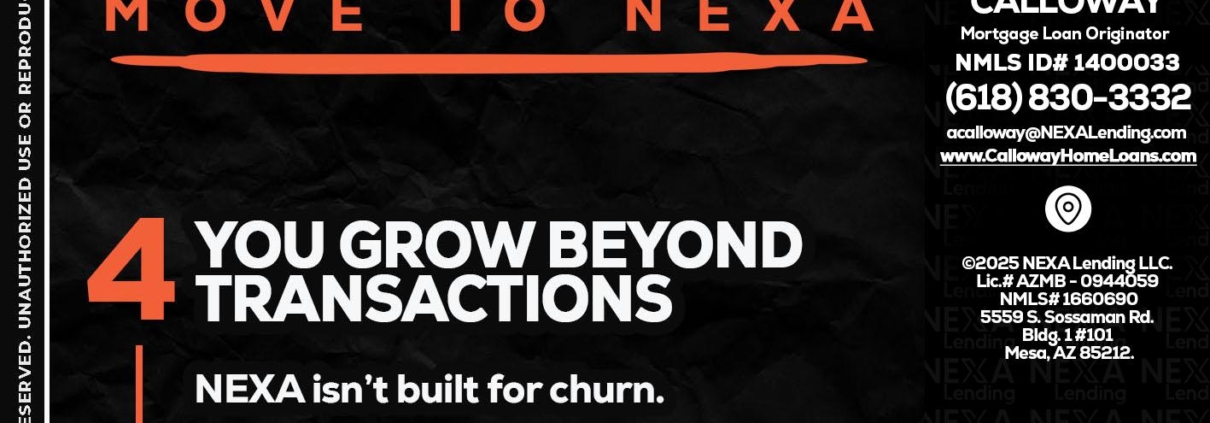 Hi, my name is Andrew Calloway. I’m a Loan Officer with NEXA Lending LLC., offering personalized mortgage solutions, fast customized quotes, great rates and service with integrity.