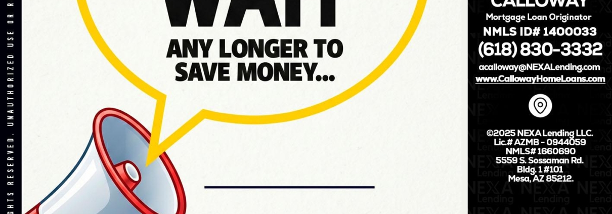 DONT WAIT - Andrew Calloway -Loan OfficerHi, my name is Andrew Calloway. I’m a Loan Officer with NEXA Lending LLC., offering personalized mortgage solutions, fast customized quotes, great rates and service with integrity.
