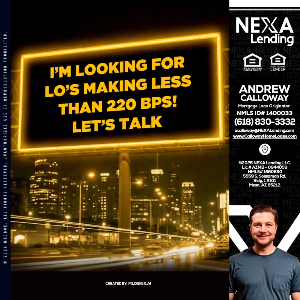 Hi, my name is Andrew Calloway. I’m a Loan Officer with NEXA Lending LLC., offering personalized mortgage solutions, fast customized quotes, great rates and service with integrity.