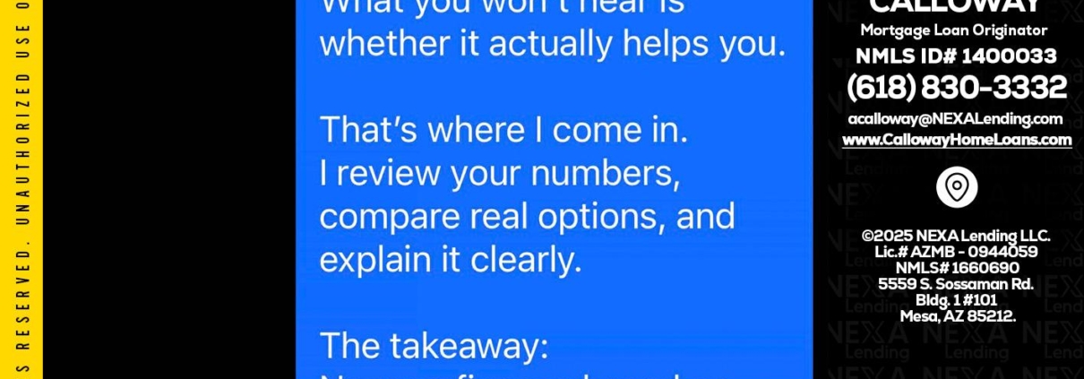 Hi, my name is Andrew Calloway. I’m a Loan Officer with NEXA Lending LLC., offering personalized mortgage solutions, fast customized quotes, great rates and service with integrity.
