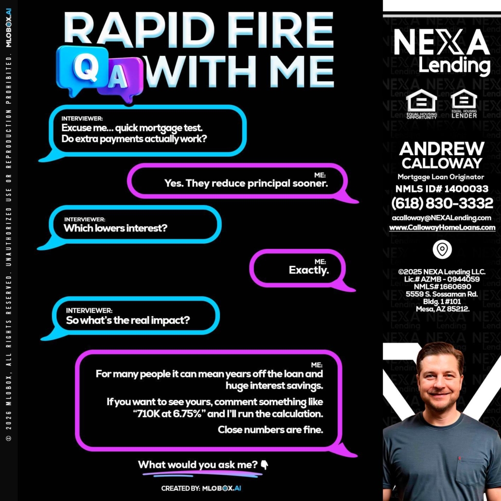 Hi, my name is Andrew Calloway. I’m a Loan Officer with NEXA Lending LLC., offering personalized mortgage solutions, fast customized quotes, great rates and service with integrity.