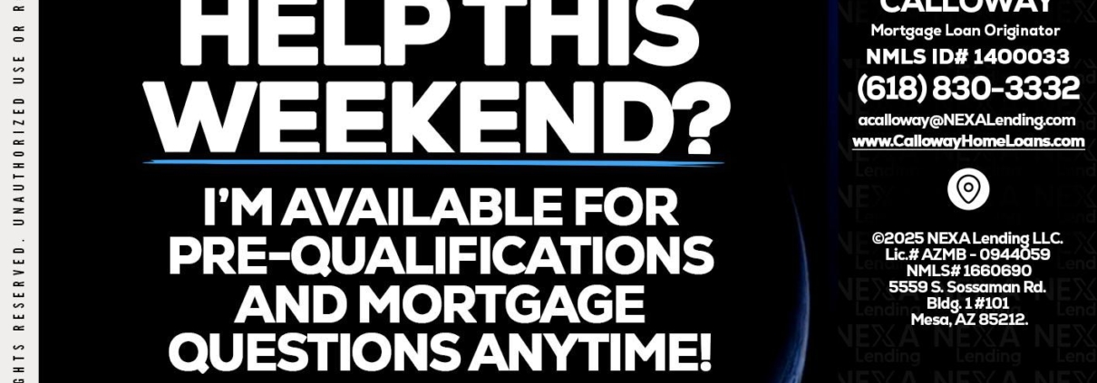Hi, my name is Andrew Calloway. I’m a Loan Officer with NEXA Lending LLC., offering personalized mortgage solutions, fast customized quotes, great rates and service with integrity.