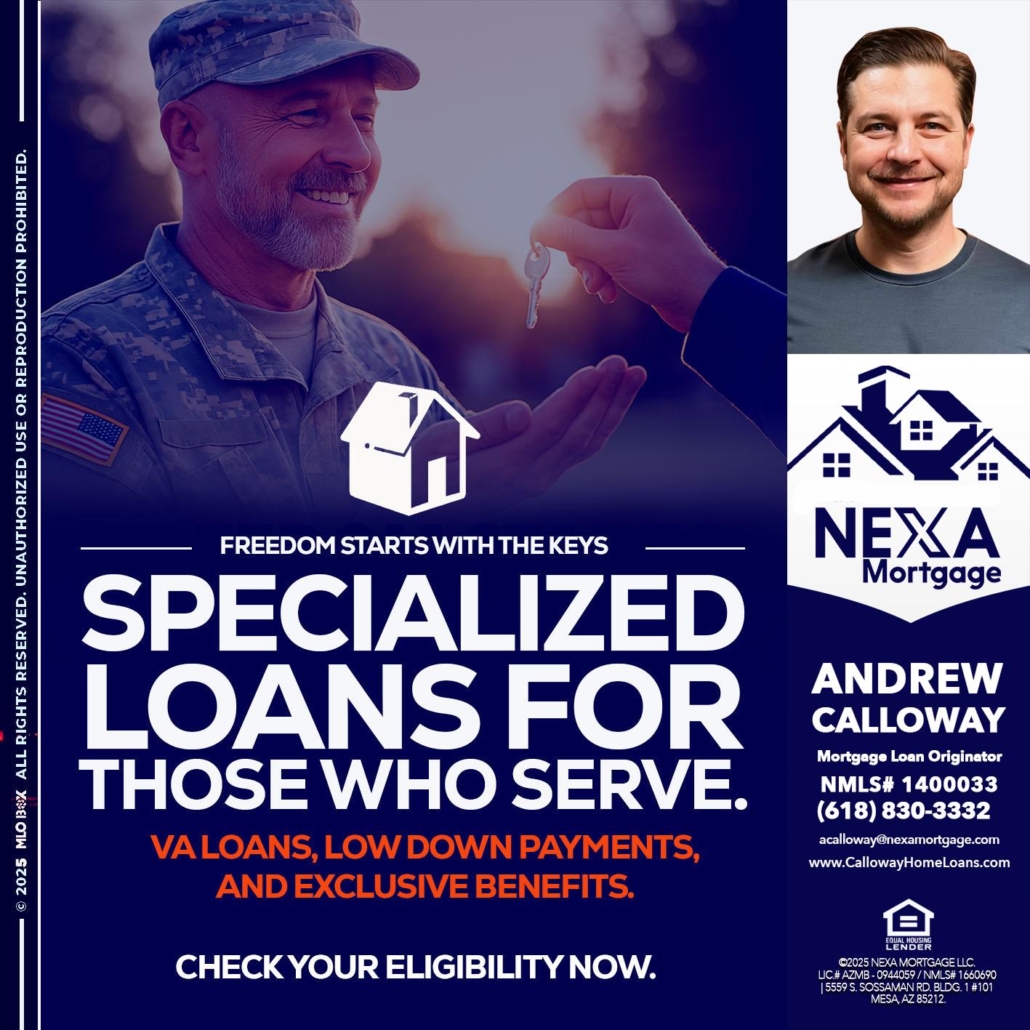 Hi, my name is Andrew Calloway. I’m a Loan Officer with NEXA Mortgage LLC., offering personalized mortgage solutions, fast customized quotes, great rates and service with integrity.