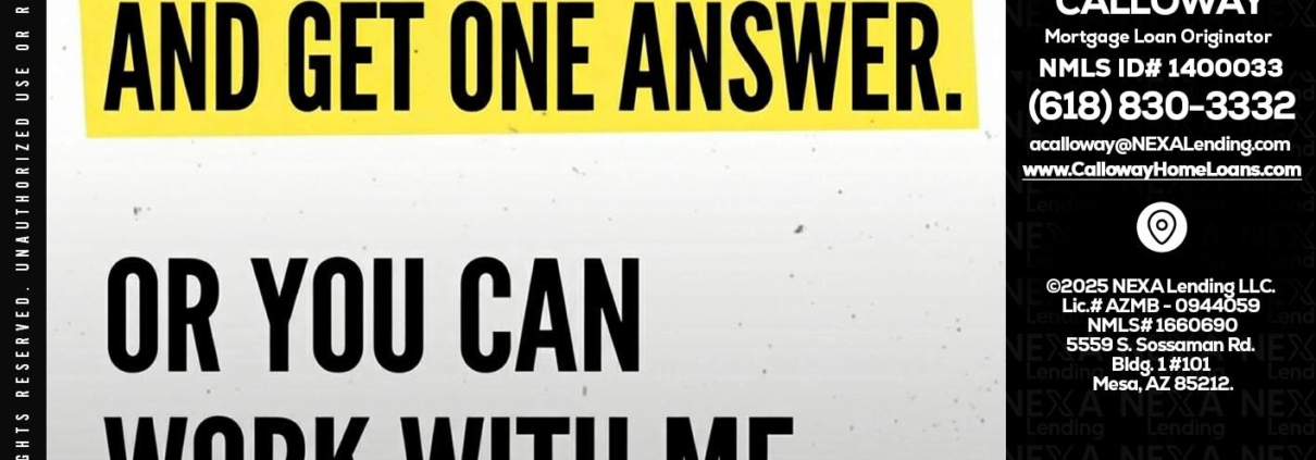 Hi, my name is Andrew Calloway. I’m a Loan Officer with NEXA Lending LLC., offering personalized mortgage solutions, fast customized quotes, great rates and service with integrity.