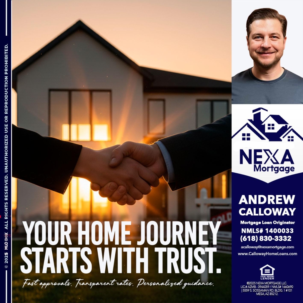 Hi, my name is Andrew Calloway. I’m a Loan Officer with NEXA Mortgage LLC., offering personalized mortgage solutions, fast customized quotes, great rates and service with integrity.